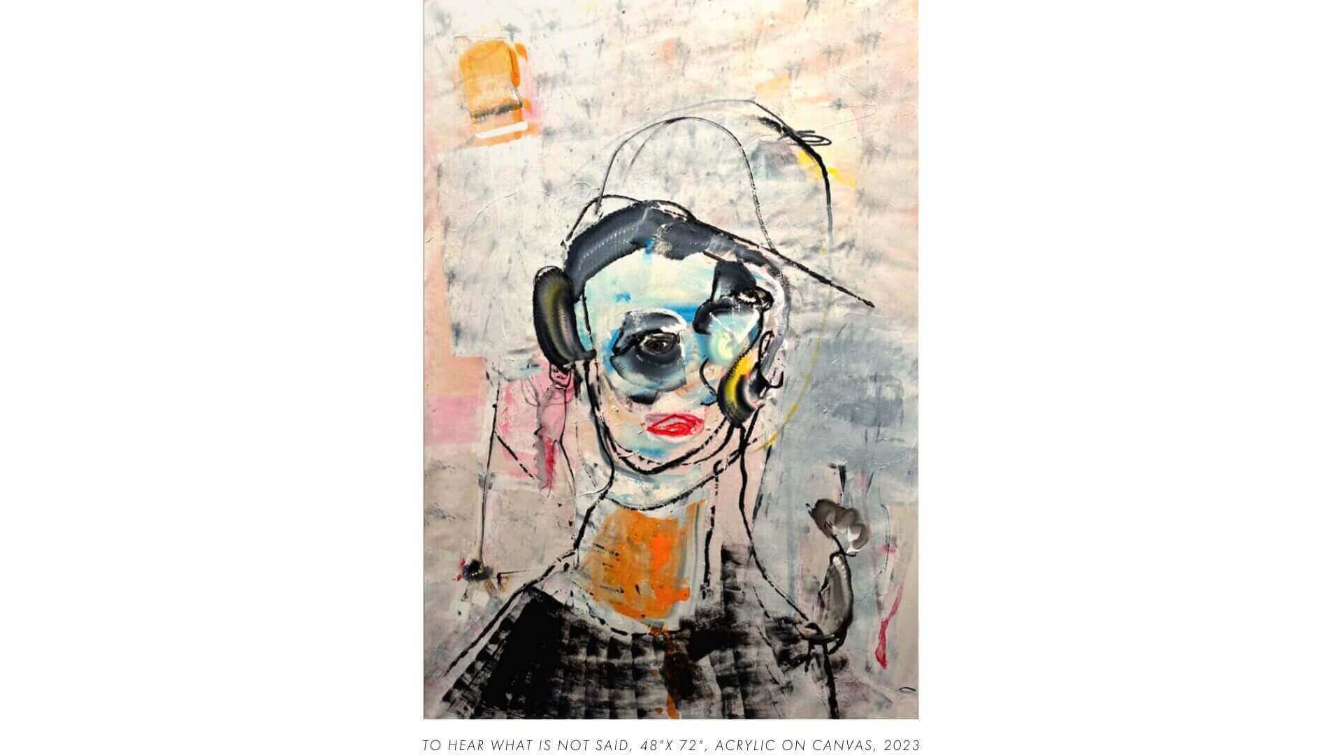 This new body of work comes from the space in between words and actions; the perceived action and inaction; the spoken and unspoken. His paintings combine swelling movement and transparency, optical effects that mirror his interest in celestial bodies and symbols, prismatic auras, and other sublime and romantic gestural visions. You can glimmer traces of Parisian bohemians like Modigliani and Delaunay while exploring the growing brutality of our functioning world and the absolute fragility of our emotional state. The chair is a symbol of safety in the work while the window is a way to escape that world. The little figures are instances of intimacy that convey connection and anger. reflects a deep exploration of the human experience and the artist's perception of the world. Through colors and small figures, the artist captures instances of intimacy, connection, and anger, which collectively embody the essence of the show's title.