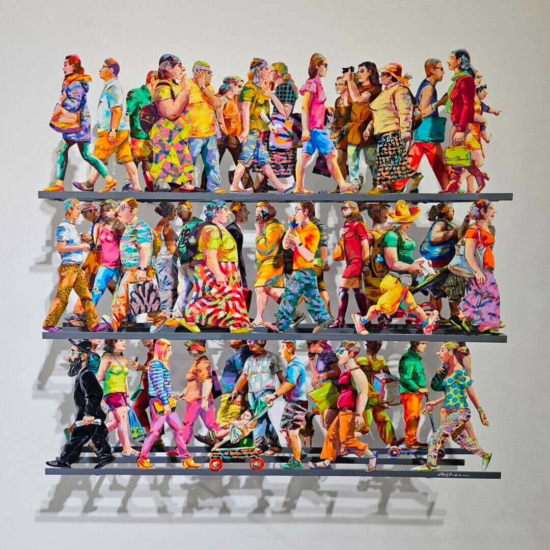 David Gerstein, born in 1944 in Jerusalem, is an Israeli artist widely recognized for his colorful and energetic works that blur the line between painting and sculpture. He studied at top art institutions across the world, including the Bezalel Academy in Jerusalem, the École des Beaux-Arts in Paris, the Art Students League in New York, and Saint Martin’s School of Art in London. Initially known for his figurative paintings, Gerstein began pushing the boundaries of traditional art in the late 1970s by introducing cut-out images and later developing his signature laser-cut metal wall sculptures. His work captures scenes from everyday life like cyclists, city streets, birds, and butterflies brought to life with bold colors and layered forms.
